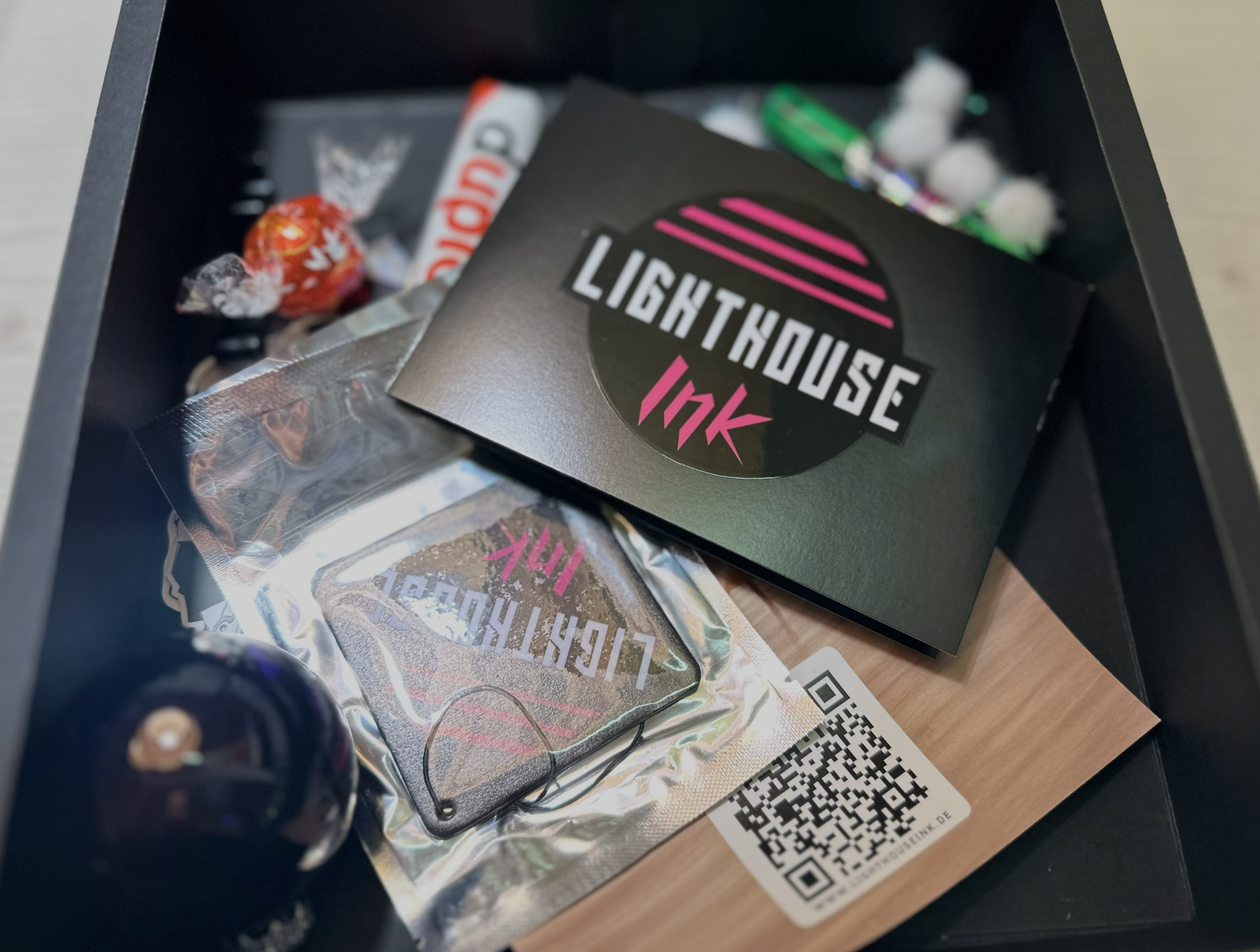 Diese Weihnachts-Gutscheinbox ist kein Standardgutschein. Jede Box wird vom Tattoo-Artist persönlich vorbereitet, enthält kleine Kennenlern-Geschenke und ist inhaltlich immer ein Unikat.